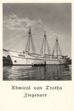 O całej historii statku opowiadał Jurgen Peters. Statek został zbudowany w stoczni w Norwegii w 1919 roku, był trójmasztowcem. W 1925 roku został kupiony przez niemieckiego armatora z Estland i zmieniono mu nazwę na "Pięć sióstr". W 1934 roku sprzedano go do Szwecji i znowu mu zmieniono nazwę na "Maj". W 1938 roku kupił go niemiecki armator i zmienił mu nazwę na "Egerland" - statek znowu wrócił do Niemiec. W 1939 roku na 10 dni przed wybuchem wojny został przejęty przez Niemieckie Ministerstwo i nadano mu nazwę "Admirał von Trotha". Był statkiem szkoleniowym Niemieckiej Partyjnej Szkoły III Rzeszy Marynarzy i Hitlerjugend. Od 1941 zacumowany był w Trzebieży - Ziegenort. Tam szkolono marynarzy wojennych. Jak w 1945 roku zaczął się zbliżać front wschodni oraz coraz częściej bombardowano Szczecin i Świnoujście - załoga statku postanowiła przeholować go w inne miejsce, bardziej na północny - zachód. W tym czasie statek sam nie był w stanie płynąć, dlatego holowały go dwa  holowniki. Holowali go do Greiswald - Wick w kierunku Stralsundu, który w tym czasie uważany był za twierdzę. Ale niestety tam dowiedzieli się, że nie można go tu pozostawić, więc z powrotem musieli go odholować do Barth - było to w końcu marca. Załoga opuściła statek i zaczęła uciekać ciężarówkami na zachód. Statek został więc bez załogi , opuszczony z pełnym wyposażeniem i zapasami. Z czasem stał się miejscem zaopatrzenia miejscowej ludności z Barth. Jurgen Peters przypomina sobie , jak będąc dzieckiem miał zakazane przez rodziców chodzenie na ten statek. Jednak ciekawość zwyciężyła i wszedł na statek , aby coś przynieść. Ale znalazł tam już tylko materiały propagandowe, które przyniósł do domu. W 1945 roku weszło wojsko radzieckie. Pierwsze co oglądali to ten statek, ale nie znaleźli tam nic ciekawego bo był to tylko statek szkoleniowy. Ludność Barth rozbierała statek na opał. Natomiast żołnierze radzieccy zabrali maszty, które używali jako podnośniki przy demontażu lotniska. część statku ktoś postawił sobie w ogrodzie zamiast altanki. Resztki jakie pozostały zostały przejęte przez firmę Studemann. Do 1953 roku stało tylko obramowanie tego statku.